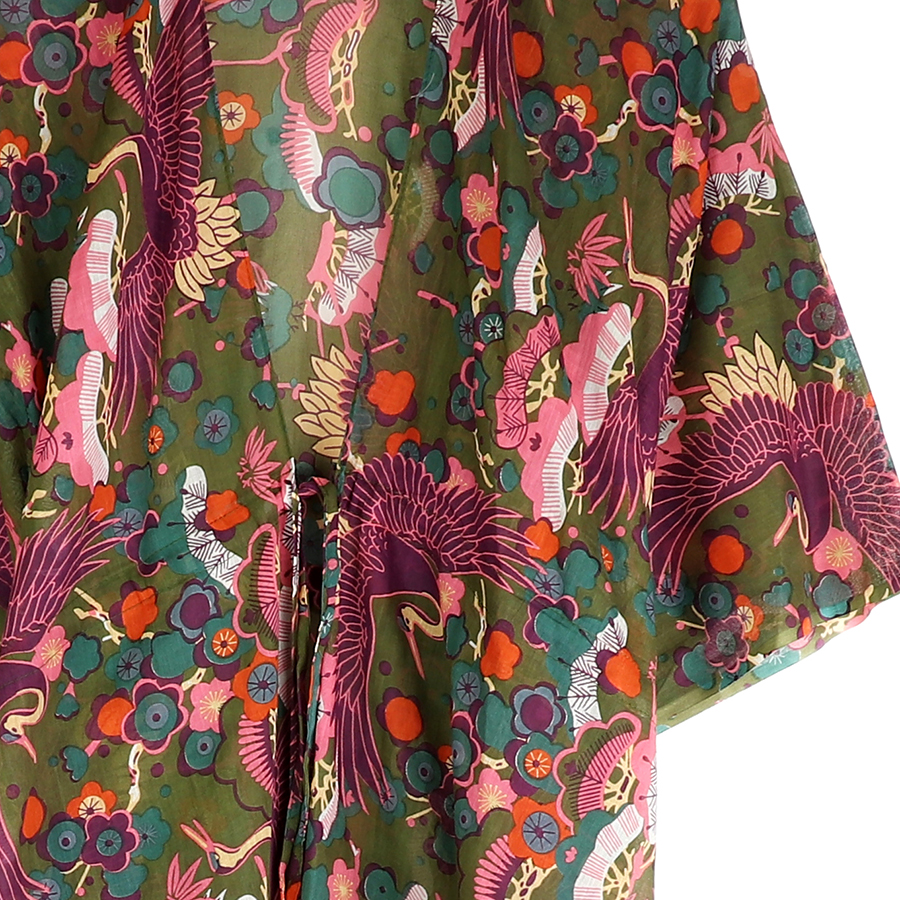This cotton purple crane kimono is a beautifully versatile piece designed to bring effortless style to sunshine dressing. Crafted from breathable, lightweight organic cotton, that gives a soft, natural feel against the skin.