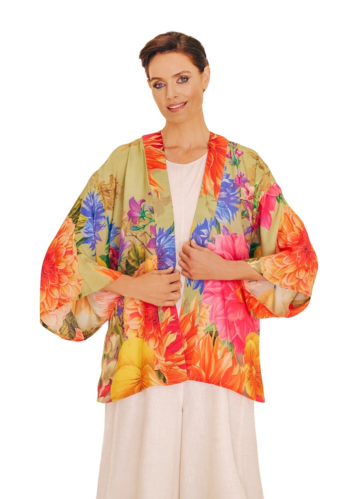 This Powder bountiful blooms kimono jacket with it’s delightfully vibrant print of oversized blooms and tropical flowers is simply stunning. Without a doubt, the cheerful bright colours of this print will make you smile every time you put it on.